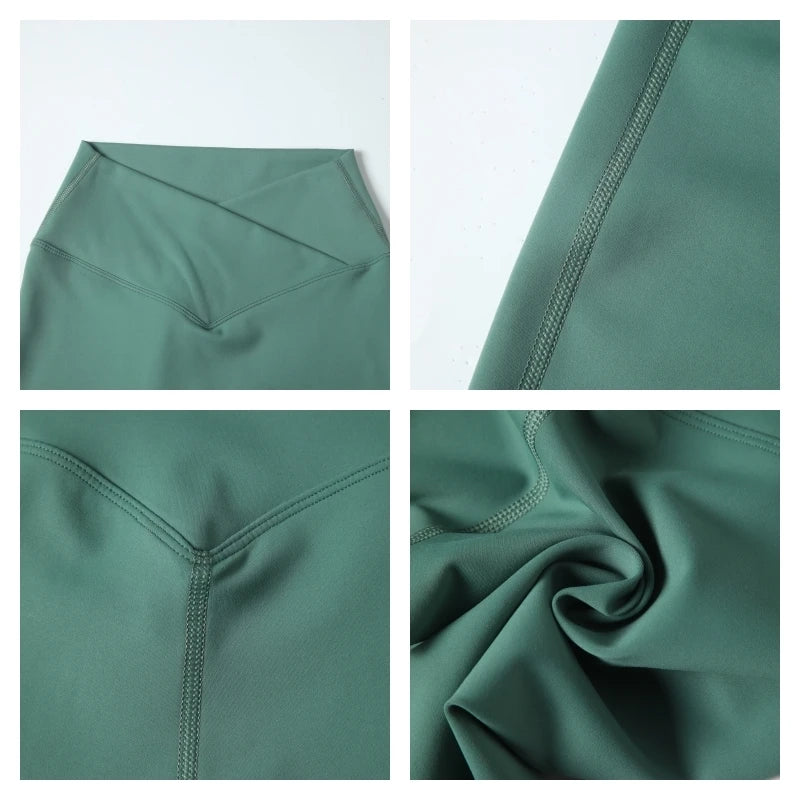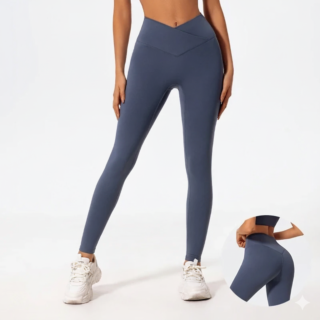 Finally, leggings that *stay put*. Our V-shaped waistband sculpts your tummy and lifts your curves for that confident, snatched look. No more tugging!